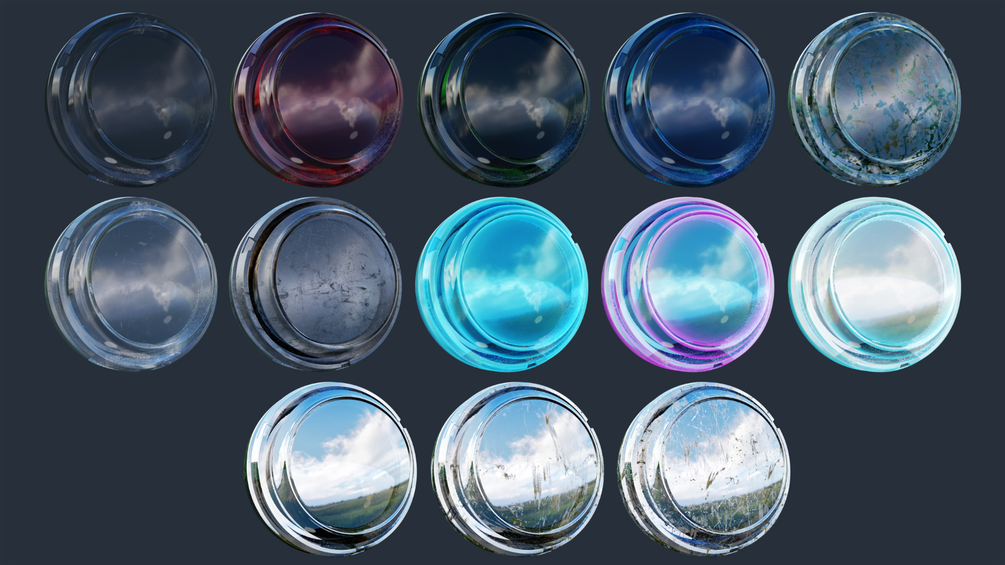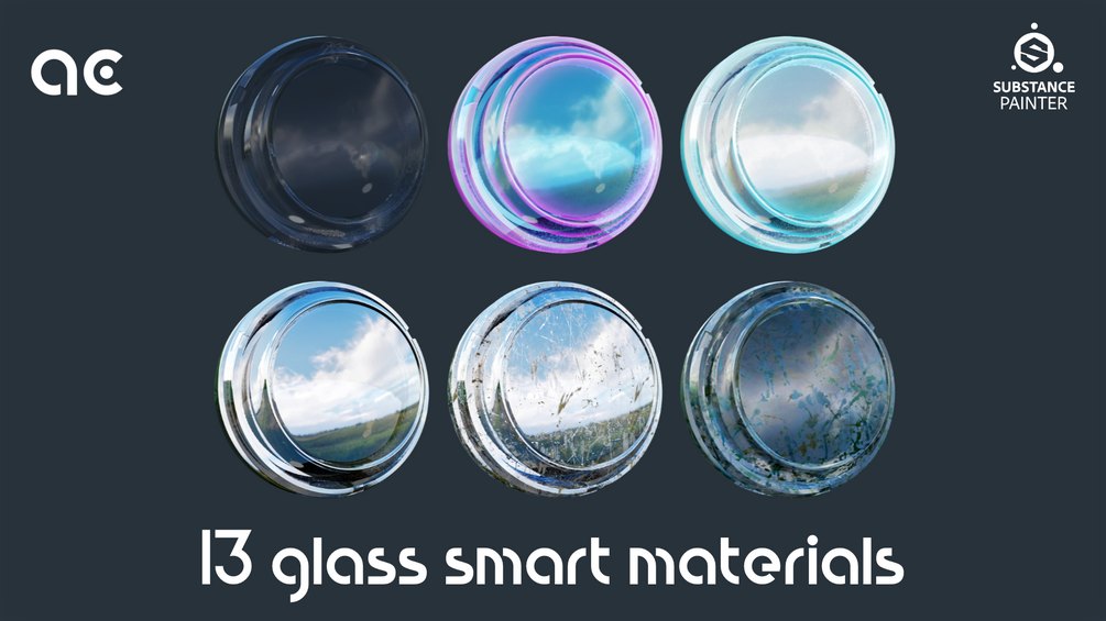 A collection of 13 glass smart materials in .spsm format to use in Substance Painter.
