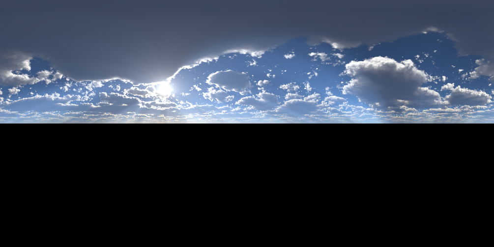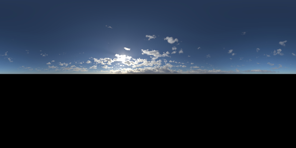 "Cloudy Skies" is part of the "HDRI Skies Series" which features 16k equirectangular resolution ( 2:1 ) images suitable both for background rendering and lighting of scenes. The skies are already cropped with the bottom part black for compositing purposes.