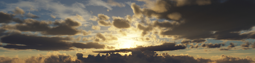 All the skies are digitally crafted in Terragen which features one of the most realistic physical based environment simulating real life effects such as ozone, Rayleigh & Mie scattering and more. Masks are included for both clouds and atmosphere for further compositing work. All the files are in OpenEXR 32 bit format.