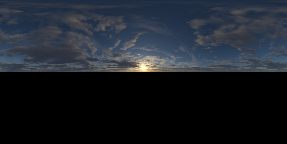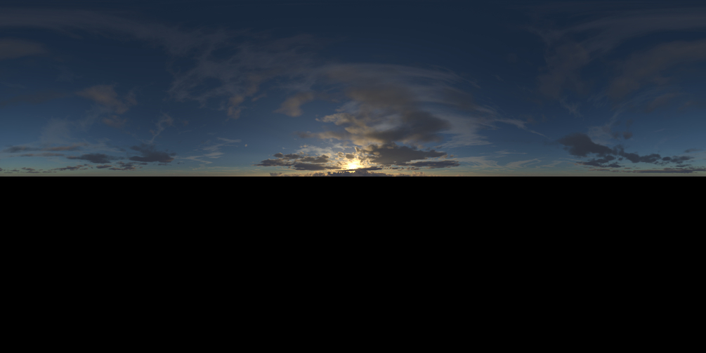 "Dawn Skies" is part of the "HDRI Skies Series" which features 16k equirectangular resolution ( 2:1 ) images suitable both for background rendering and lighting of scenes. The skies are already cropped with the bottom part black for compositing purposes.